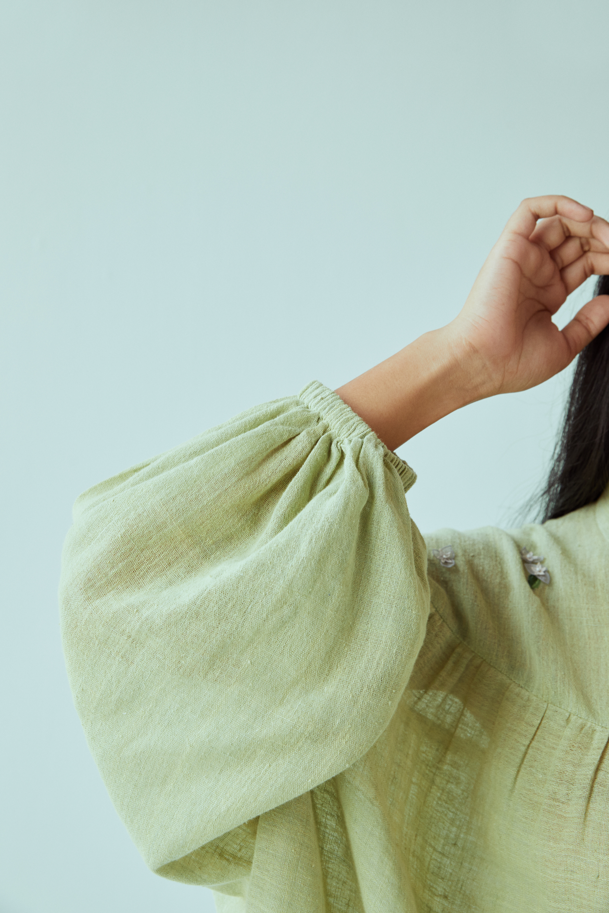 This piece shows off a radiant summer green that's been herbal-dyed using all-natural ingredients by our green partner, Truetone Ink. Being inspired by nature, our greens are always present in some way in our chapters and we're excited to bring you a new shade that's even more vibrant than we have created before.