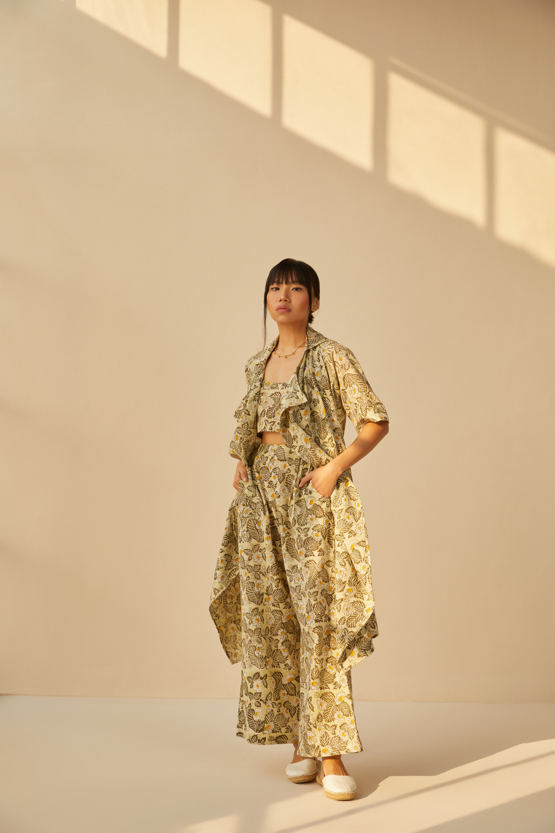 The perfect adventuring companion is this hand block printed gilet. Featuring our favourite daisy motif, blend in with your wildflower surroundings and radiate their elegant beauty in this piece.